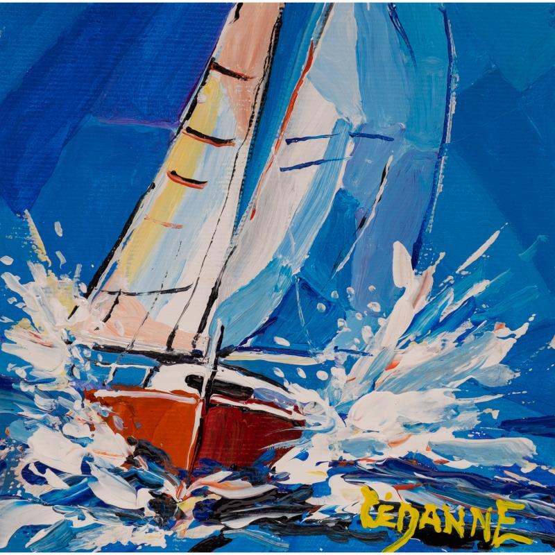 Dieses einzigartige und originale zeitgenössische Kunstwerk "Régate bleu, blanc, rouge" in dem Stil "Figurativ" wurde von dem zeitgenössischen Künstler Cédanne kreiert.