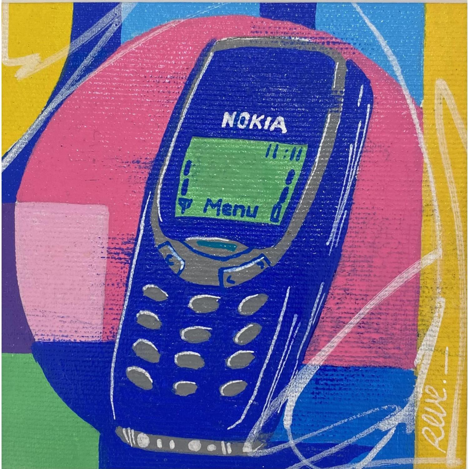 Dieses einzigartige und originale zeitgenössische Kunstwerk "Nokia 3310" in dem Stil "Pop-Art" wurde von dem zeitgenössischen Künstler Revel kreiert.