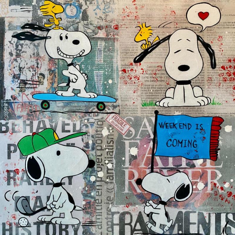 Dieses einzigartige und originale zeitgenössische Kunstwerk "Snoopy en we !" in dem Stil "Pop-Art" wurde von dem zeitgenössischen Künstler Marie G. kreiert.
