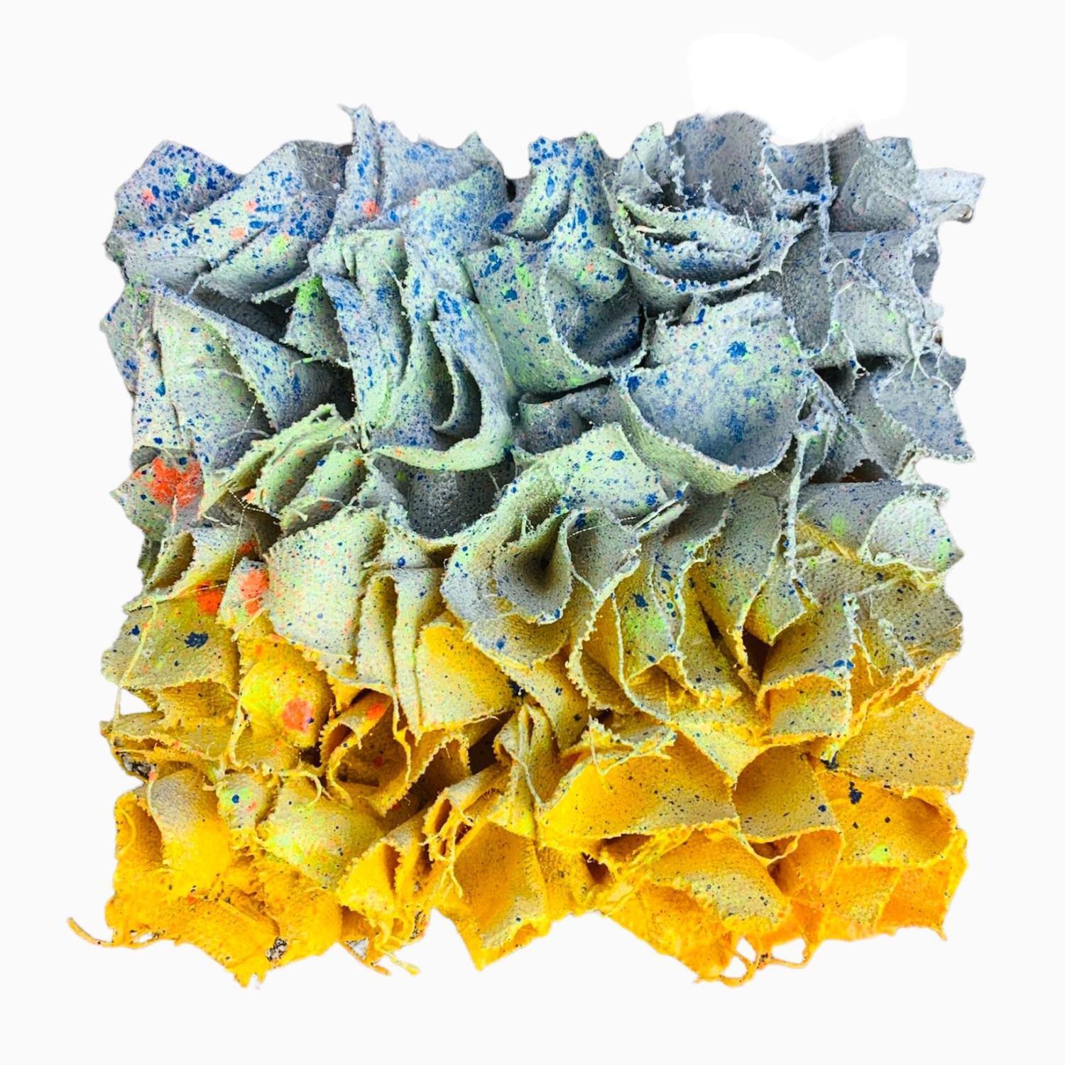 Der Künstler verwendete Holz, Graffiti, Textil, Upcycling auf Holz, um dieses Kleine Gemälde zum Thema "Minimalistisch" anzufertigen.