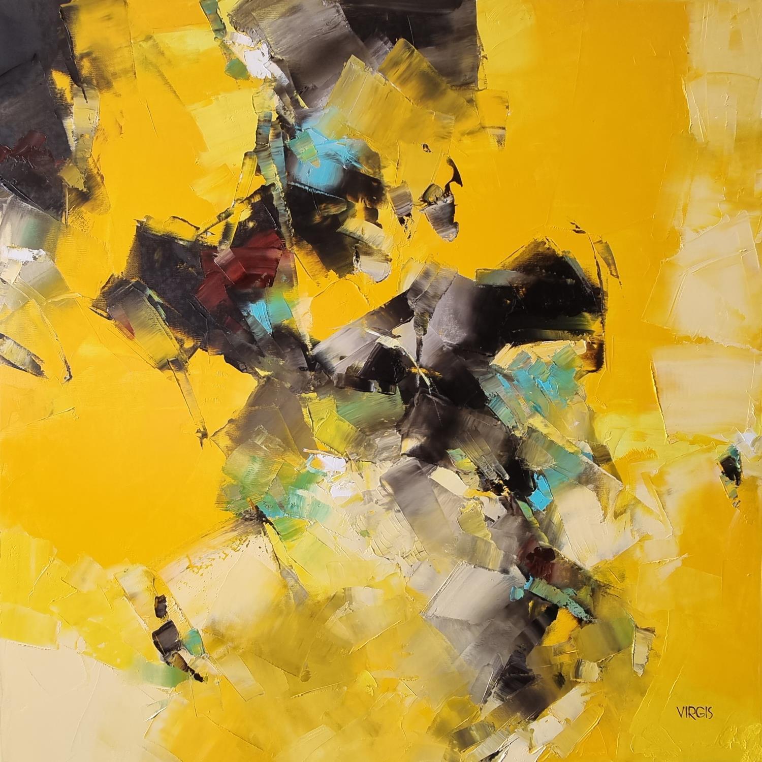 Dieses einzigartige und originale zeitgenössische Kunstwerk "Orange yellow" in dem Stil "Abstrakt" wurde von dem zeitgenössischen Künstler Virgis kreiert.