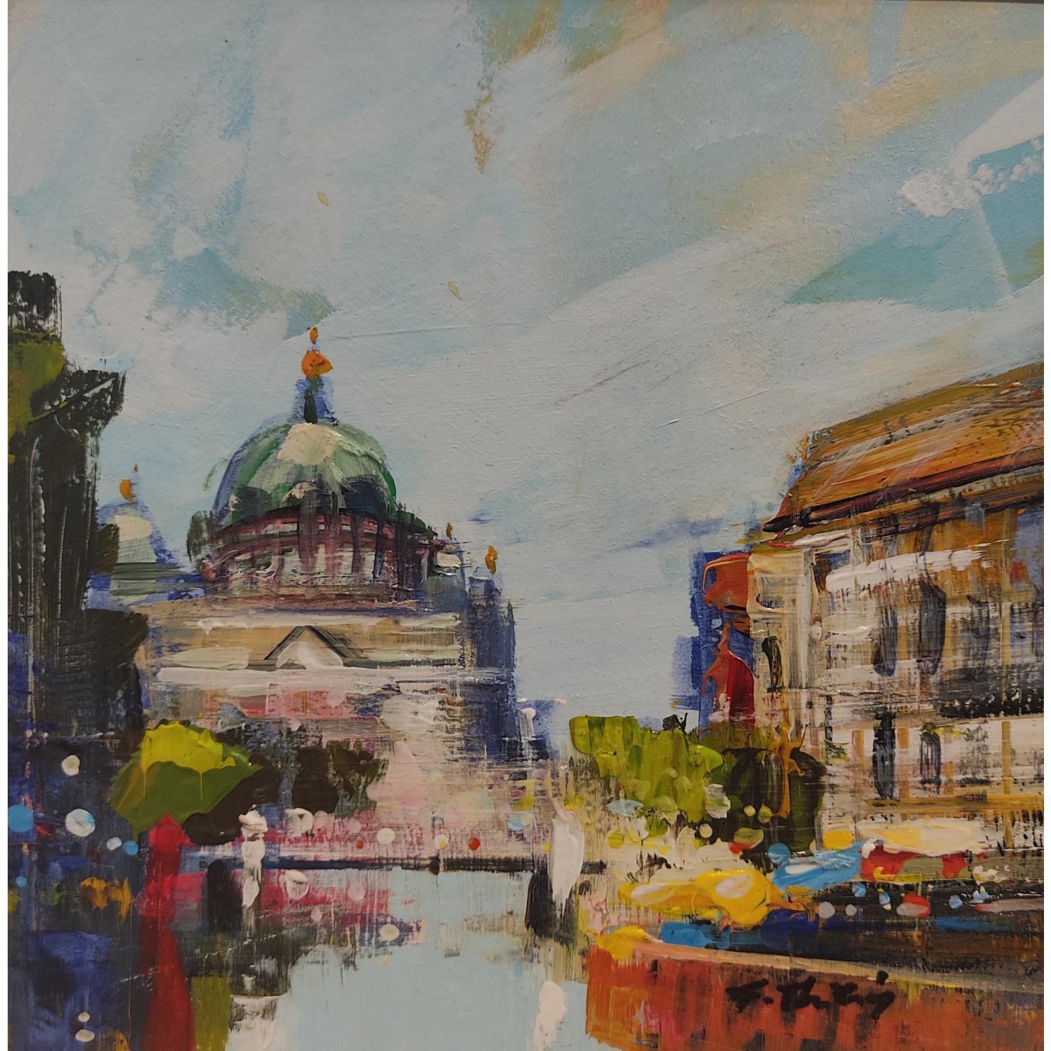 Der Künstler verwendete Acryl, um dieses Kleine Gemälde zum Thema "Architektur, Landschaften, Urban" anzufertigen.