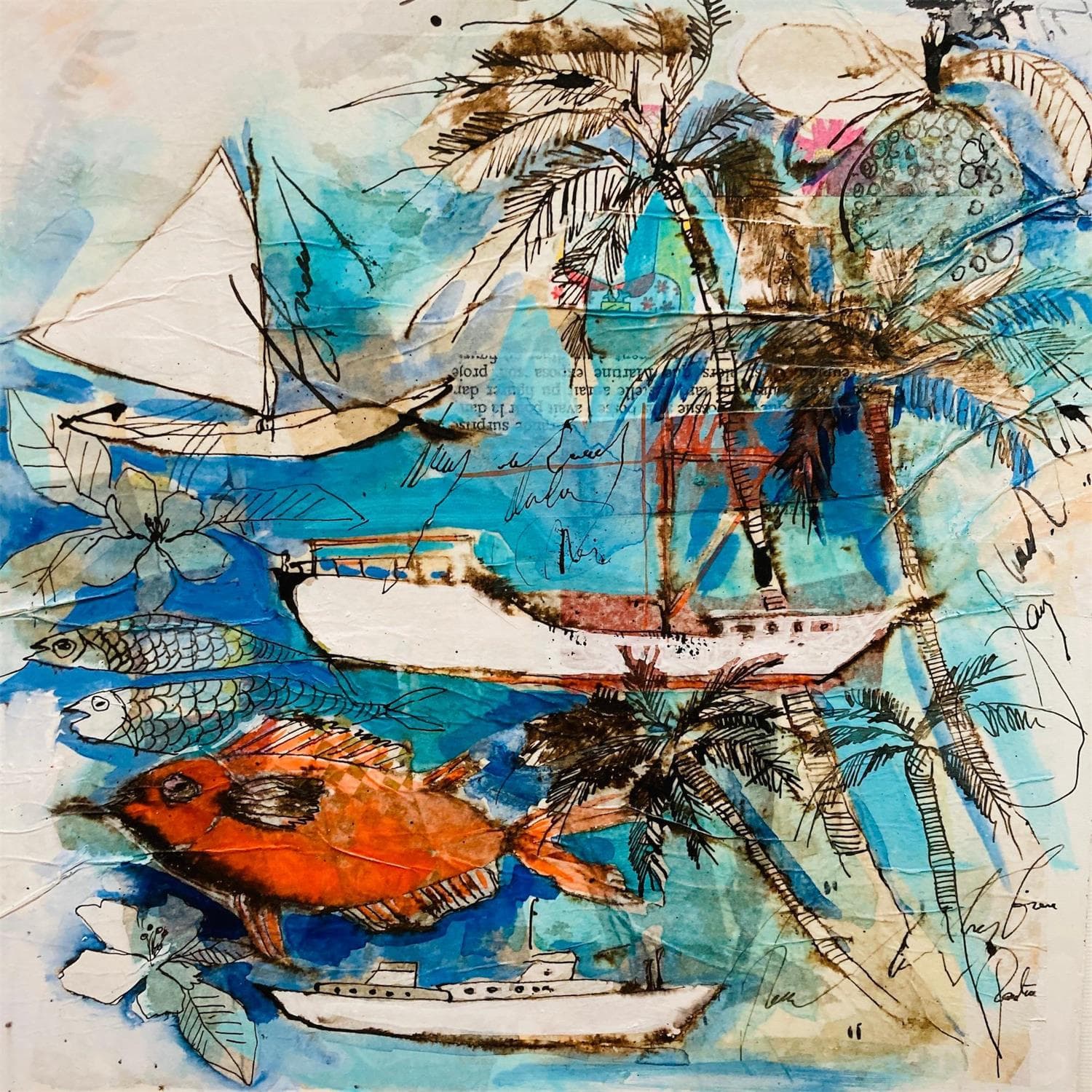 Dieses einzigartige und originale zeitgenössische Kunstwerk "Boats" in dem Stil "Figurativ" wurde von dem zeitgenössischen Künstler Colombo Cécile kreiert.