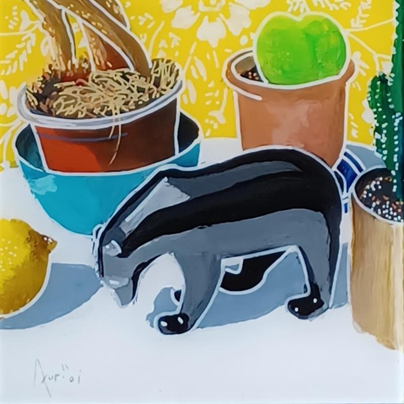 Der Künstler verwendete Acryl, Plexiglas, Posca auf Plexiglas, um dieses Kleine Gemälde zum Thema "Stillleben" anzufertigen.