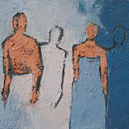 " Für Corinne Malfreyt, die sich von Pina BAUSCHs Choreografie "Le sacre du printemps" von Igor STRAVINSKY inspirieren lässt, ist der Raum zwischen den Körpern immer noch Tanz. Sie installiert auf ihren Gemälden eine Architektur aus Rhythmen und Farbnuancen, eine Deklination von Grautönen, die manchmal von resonanten Rottönen unterbrochen wird, in denen der Schwung der Tänzer seinen Platz sucht und findet. Entsprechend der Übereinstimmung von Inhalt und Form, um die empfundene Emotion wiederzugeben, tanzt, pulsiert und vibriert die farbige Materie innerhalb der angedeuteten Grenzen der Zeichnung in harmonischen Kadenzen, in zerbrechlichen Gleichgewichten, dem Augenblick der Komposition.(...) Piero Cavalleri (Kunstkritiker)