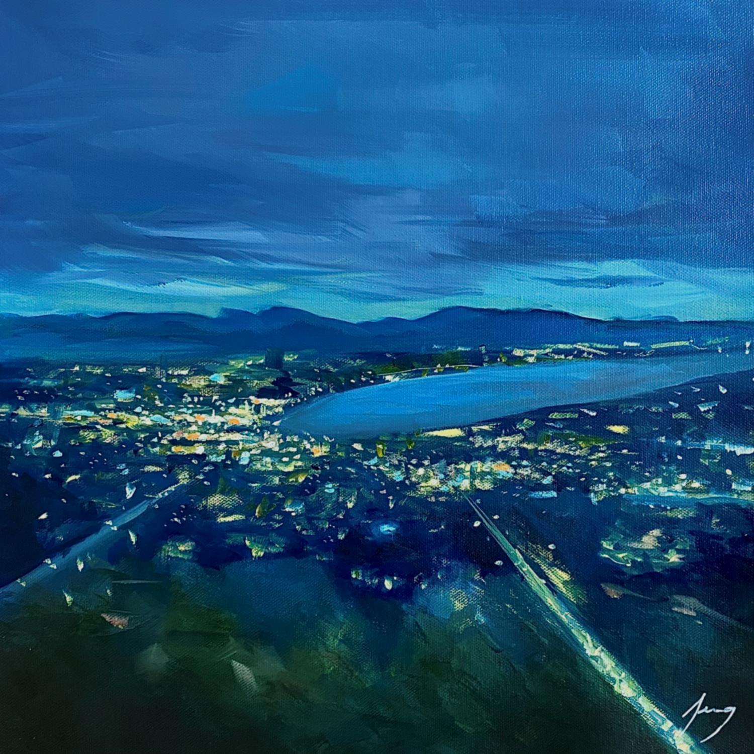Dieses einzigartige und originale zeitgenössische Kunstwerk "Vue sur le lac" in dem Stil "Figurativ" wurde von dem zeitgenössischen Künstler Jung François kreiert.