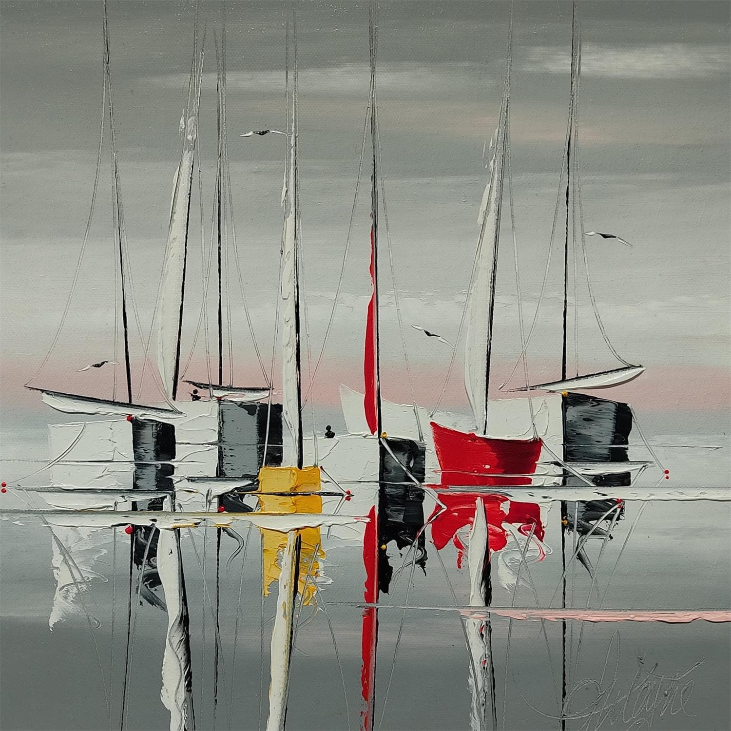 Der Künstler verwendete Öl, Acryl auf Leinwand, um dieses Kleine Gemälde zum Thema "Marine" anzufertigen.