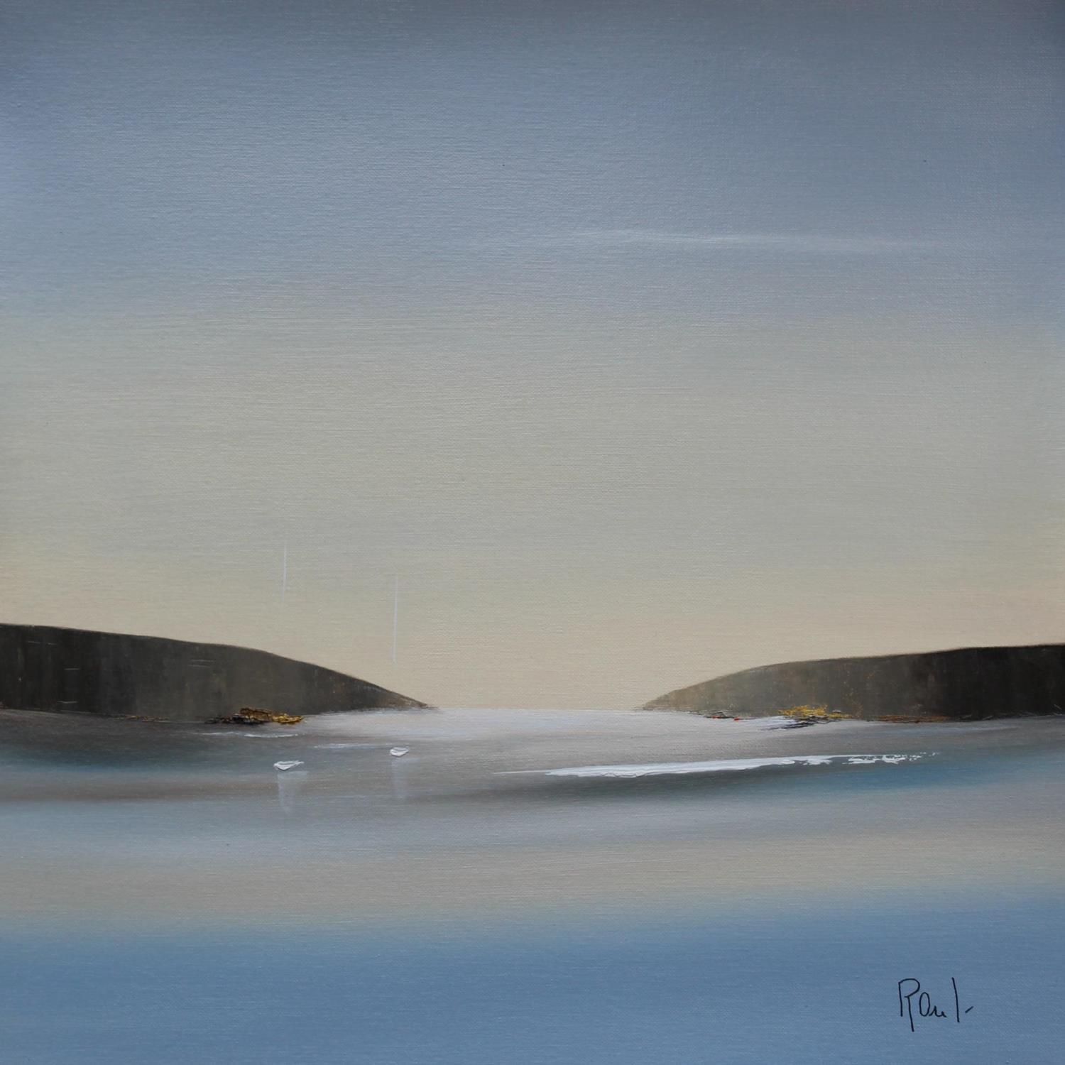 Der Künstler verwendete Öl auf Papier, um dieses Kleine Gemälde zum Thema "Marine, Minimalistisch" anzufertigen.