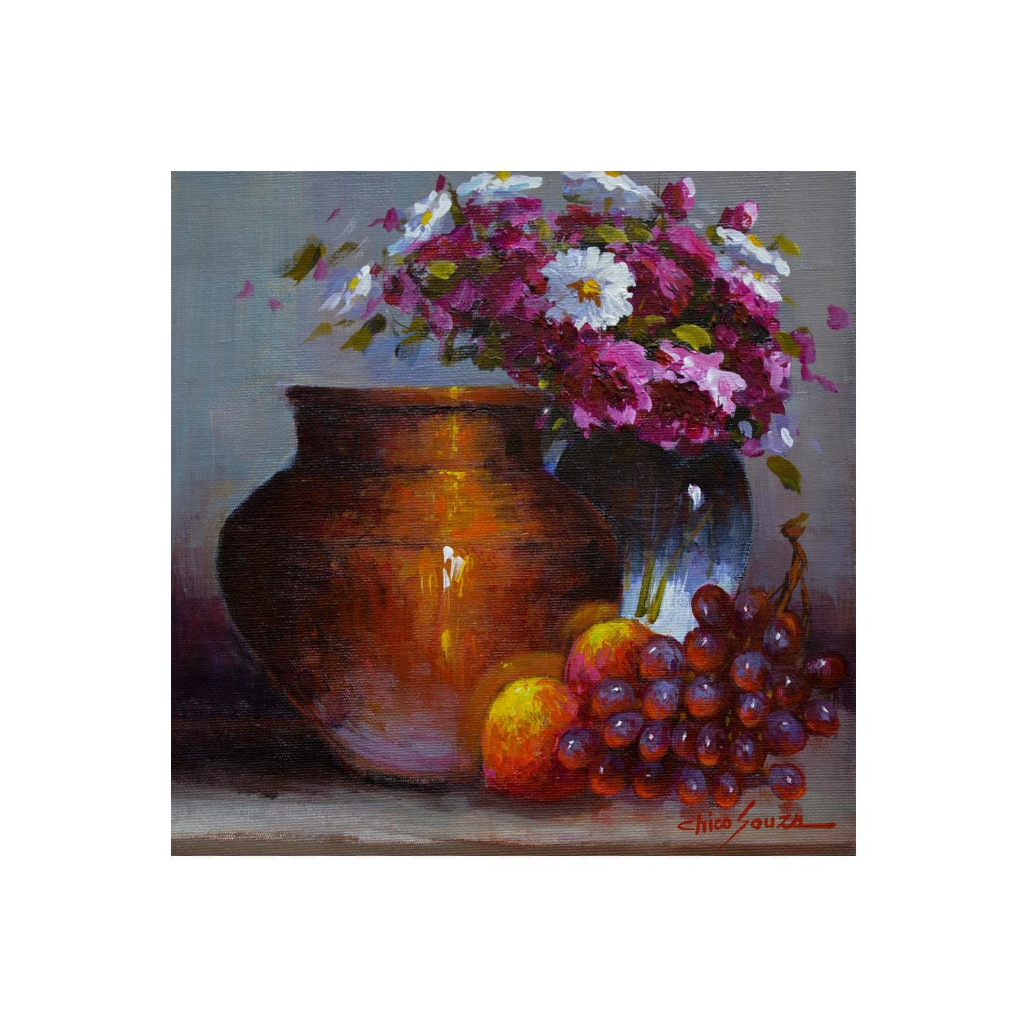 Der Künstler verwendete Öl auf Leinwand, um dieses Kleine Gemälde zum Thema "Stillleben" anzufertigen.