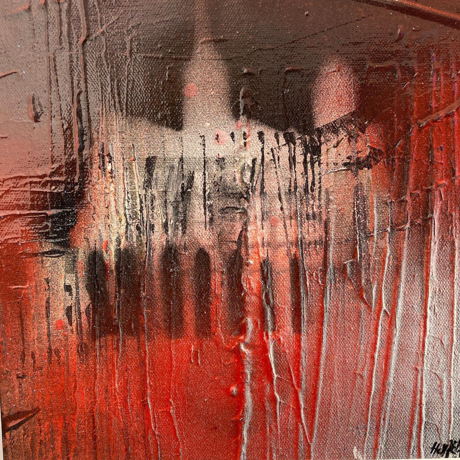 Der Künstler verwendete Öl auf Leinwand, um dieses Kleine Gemälde zum Thema "Urban" anzufertigen.