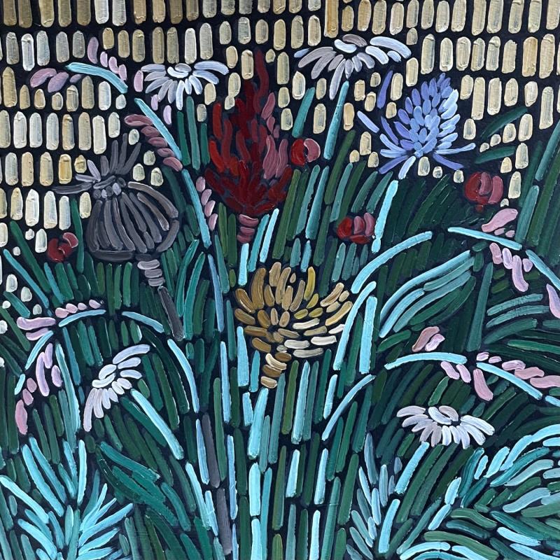 Der Künstler verwendete Acryl auf Papier, um dieses Kleine Gemälde zum Thema "Landschaften, Natur" anzufertigen.