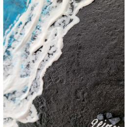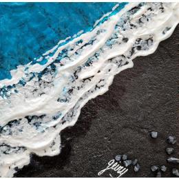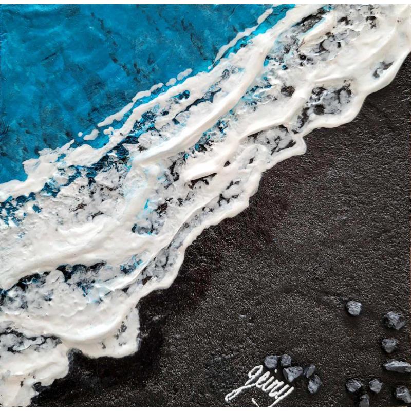 Der Künstler verwendete Acryl, Pigmente, Marmorpulver auf Leinenkarton, um dieses Kleine Gemälde zum Thema "Marine, Natur" anzufertigen.