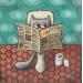 Die Künstlerin verwendete die Acryltechnik, um dieses kleinformatige Gemälde auf Karton im Stil der naiven Kunst zu schaffen.