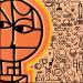 Der Künstler verwendete Acryl, Posca auf Leinenkarton, um dieses Kleine Gemälde zum Thema "Pop-Ikonen" anzufertigen.