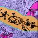 Der Künstler verwendete Acryl, Posca auf Leinenkarton, um dieses Kleine Gemälde zum Thema "Pop-Ikonen" anzufertigen.
