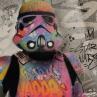 Der Künstler verwendete Acryl, Graffiti auf Leinenkarton, um dieses Kleine Gemälde zum Thema "Pop-Ikonen" anzufertigen.