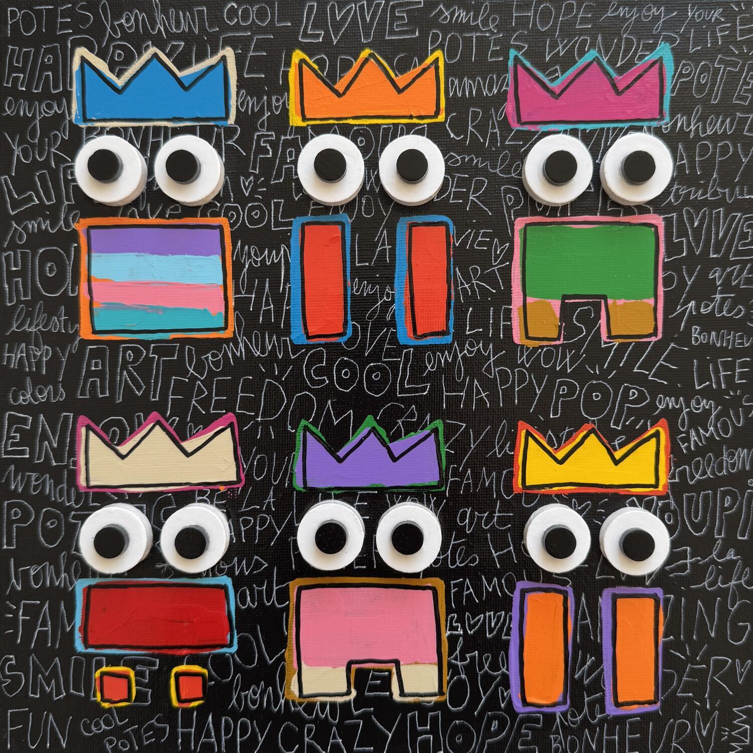 Dieses einzigartige und originale zeitgenössische Kunstwerk "TRIBU 6 POTES" in dem Stil "Pop-Art" wurde von dem zeitgenössischen Künstler Mam kreiert.