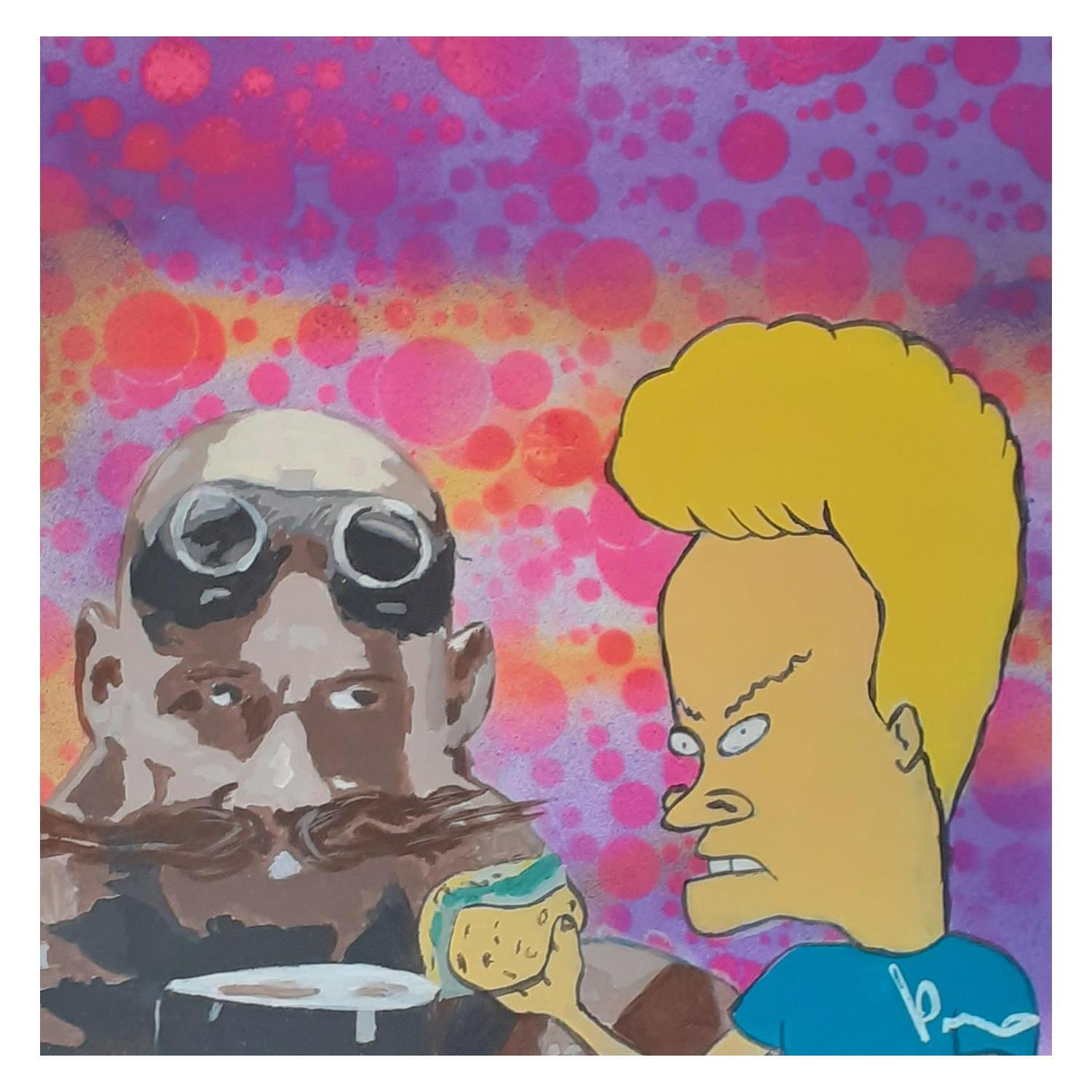Der Künstler verwendete Acryl auf Papier, um dieses Kleine Gemälde zum Thema "Pop-Ikonen" anzufertigen.