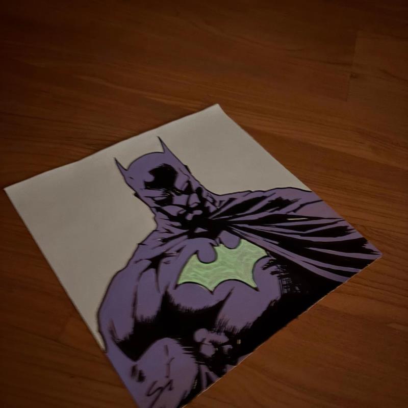 Dieses einzigartige und originale zeitgenössische Kunstwerk "Fluor heart Batman" in dem Stil "Pop-Art" wurde von dem zeitgenössischen Künstler Mestres Sergi kreiert.