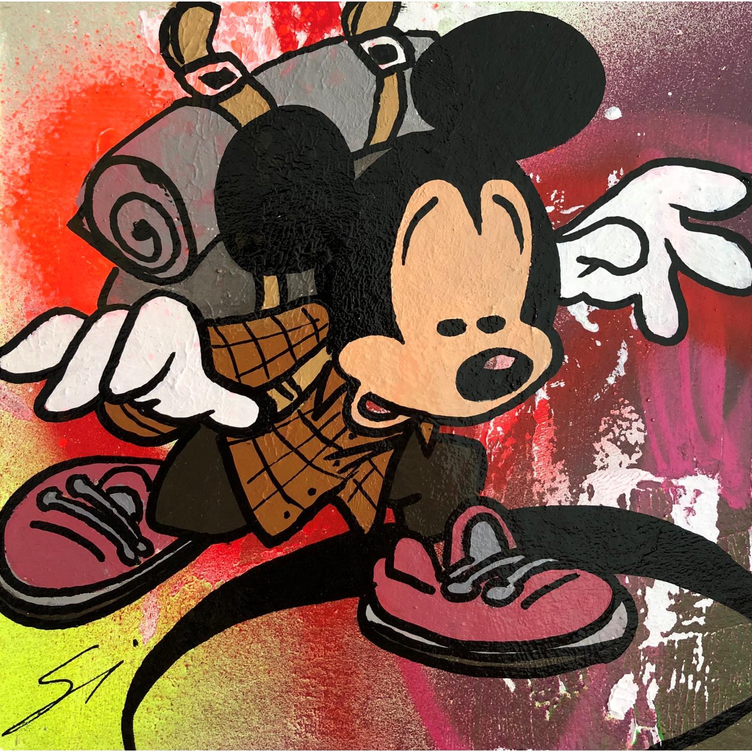 Dieses einzigartige und originale zeitgenössische Kunstwerk "Mickey searching" in dem Stil "Pop-Art" wurde von dem zeitgenössischen Künstler Mestres Sergi kreiert.