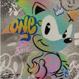 Dieses einzigartige und originale zeitgenössische Kunstwerk "Sonic" in dem Stil "Pop-Art" wurde von dem zeitgenössischen Künstler Kedarone kreiert.