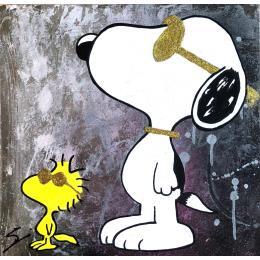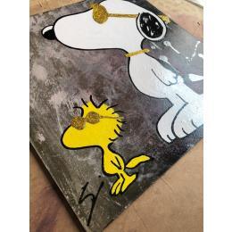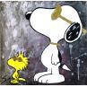 Der Künstler verwendete Graffiti, Acryl auf Leinenkarton, um dieses Kleine Gemälde zum Thema "Pop-Ikonen" anzufertigen.