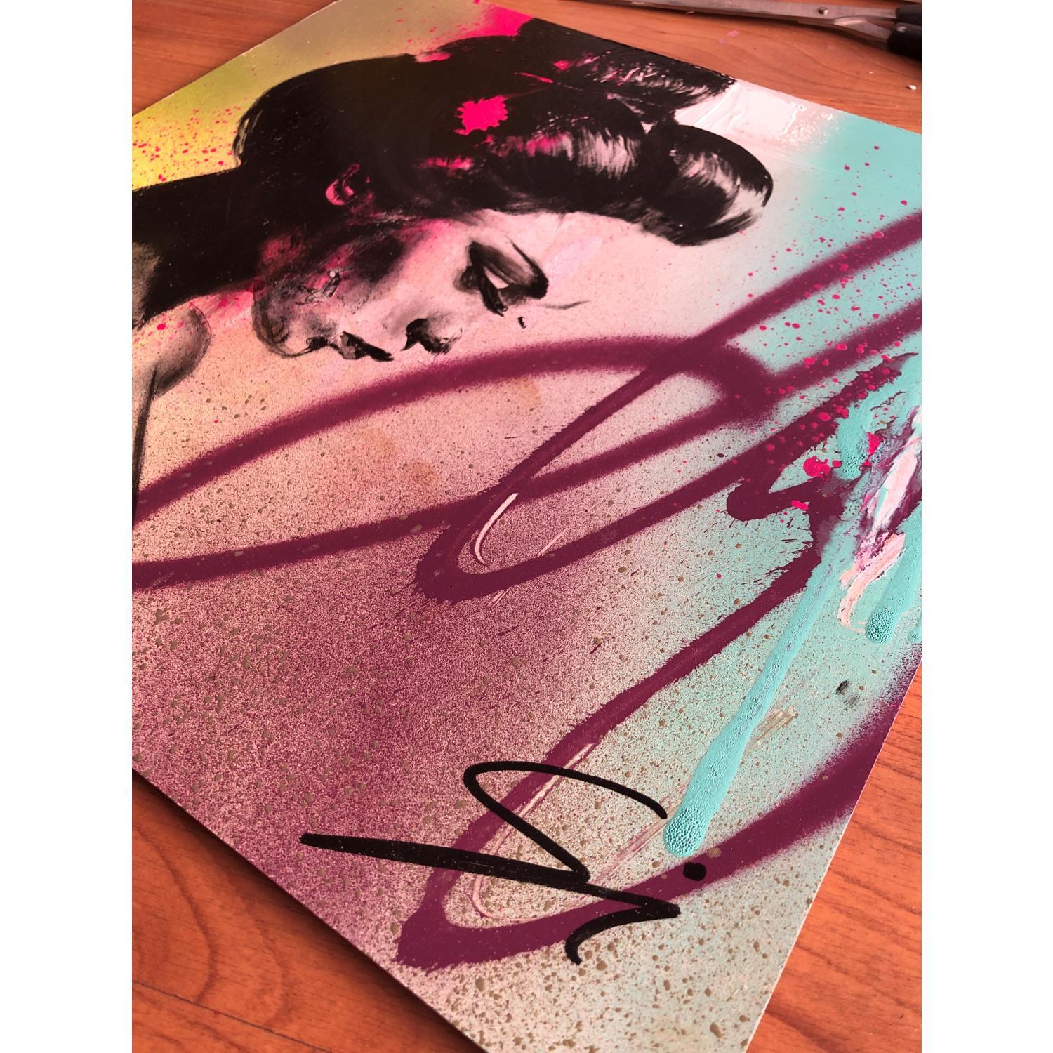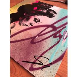 Der Künstler verwendete Graffiti, Acryl auf Pappe, um dieses Kleine Gemälde zum Thema "Porträt, Pop-Ikonen" anzufertigen.