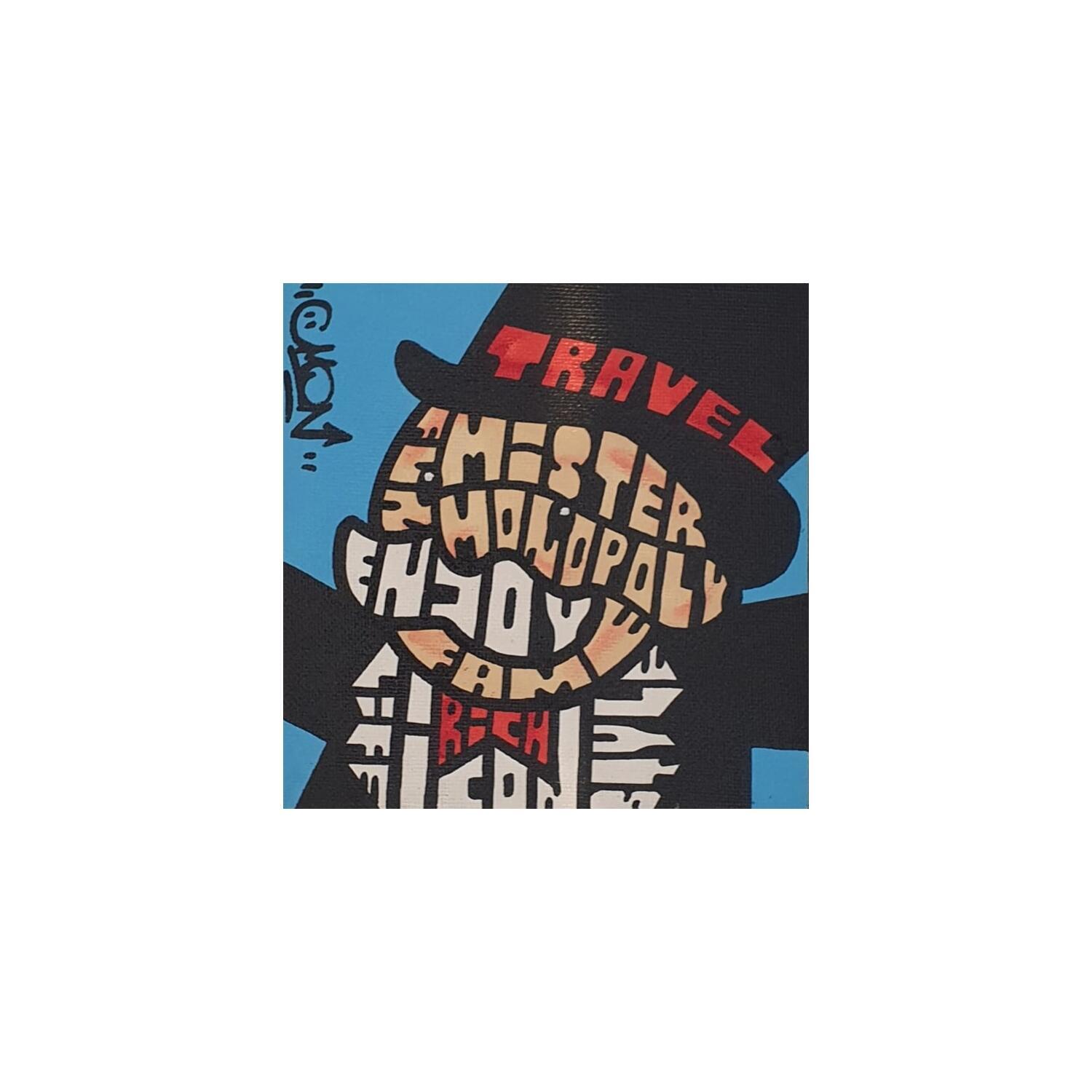 Dieses einzigartige und originale zeitgenössische Kunstwerk "Hey ! Mister Monopoly" in dem Stil "Pop-Art" wurde von dem zeitgenössischen Künstler Cmon kreiert.