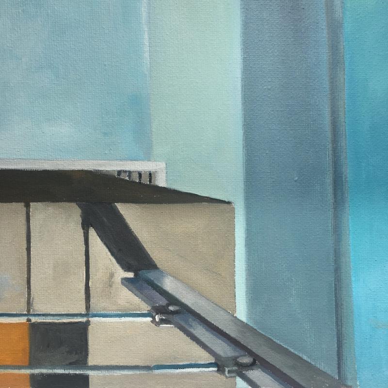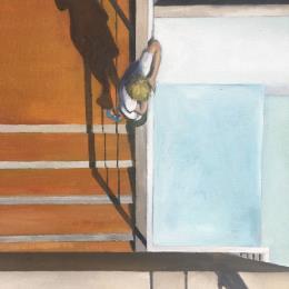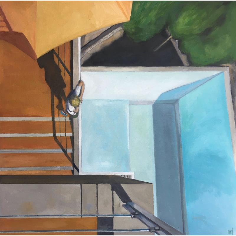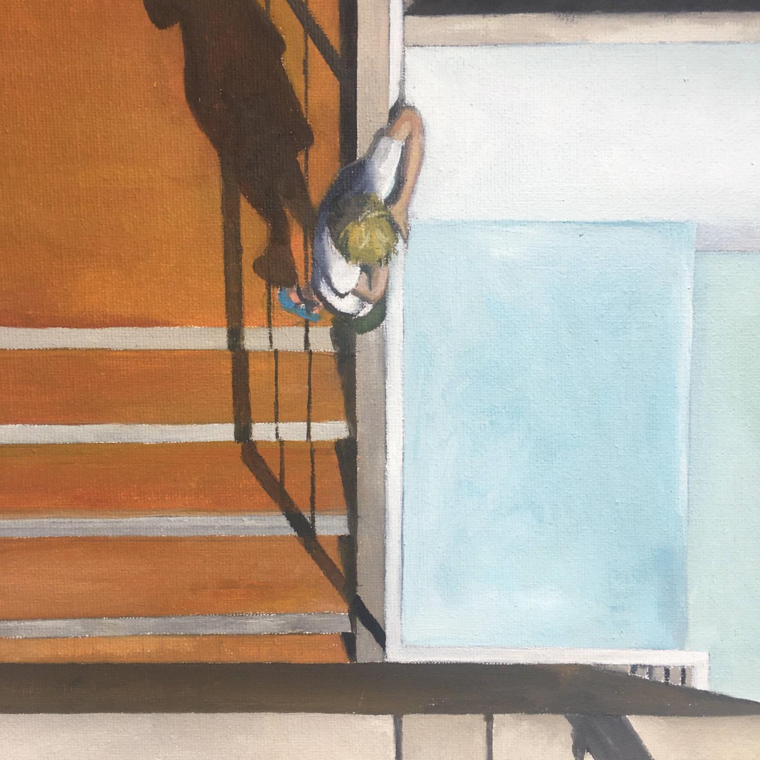 Gemälde Pool and boy von Laplane Marion | Gemälde Realismus Alltagsszenen Kinder Architektur Öl