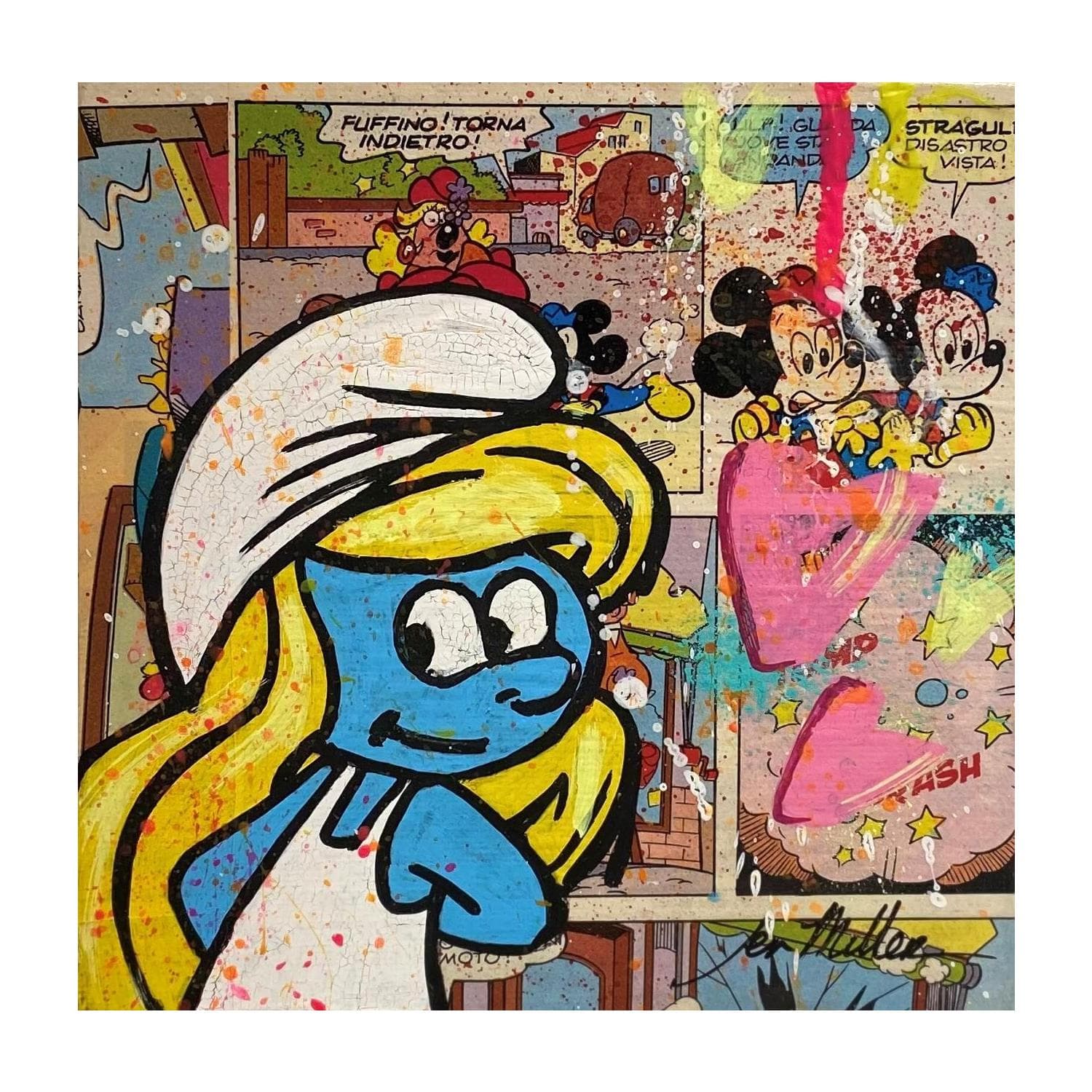 Dieses einzigartige und originale zeitgenössische Kunstwerk "Comic Smurfette" in dem Stil "Street art" wurde von dem zeitgenössischen Künstler Miller Jen kreiert.