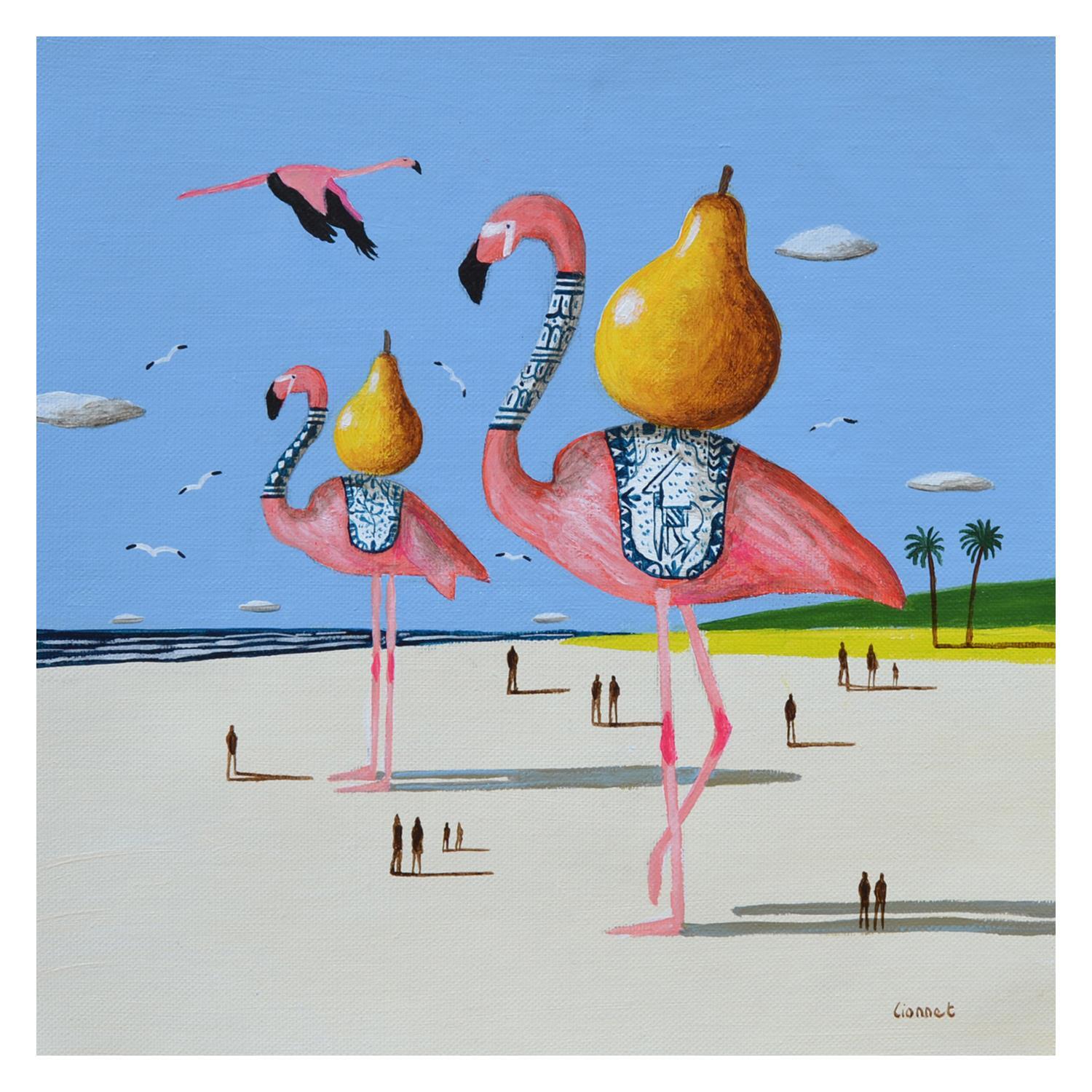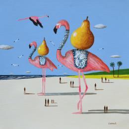 Dieses einzigartige und originale zeitgenössische Kunstwerk "Flamants roses" in dem Stil "Surrealismus" wurde von dem zeitgenössischen Künstler Lionnet Pascal kreiert.