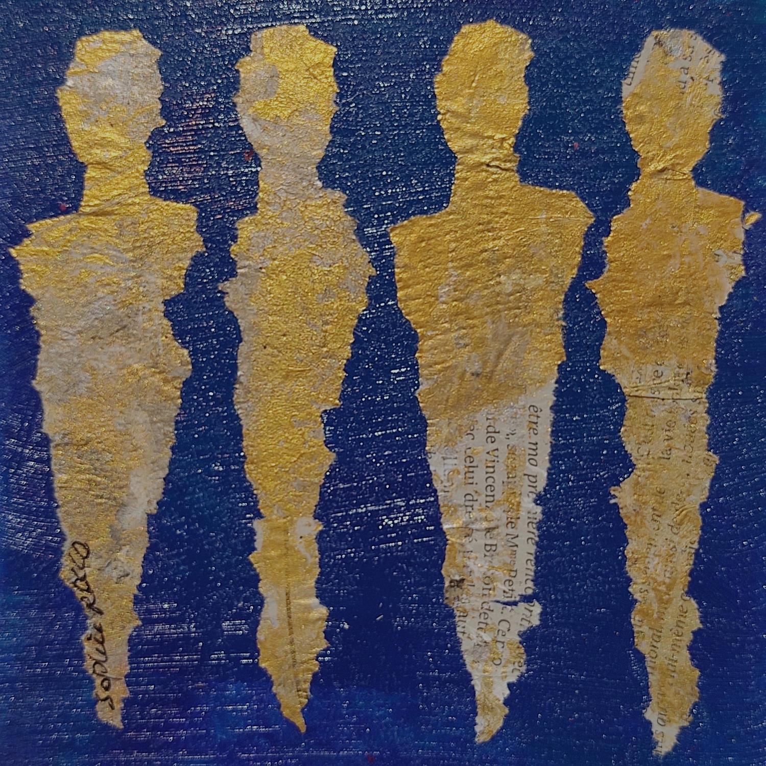 Der Künstler verwendete Acryl, Collage, Sand auf Leinenkarton, um dieses Kleine Gemälde anzufertigen.