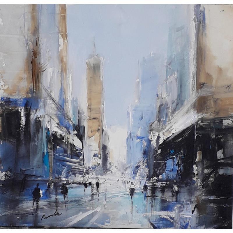 Der Künstler verwendete Öl, Acryl auf Papier, um dieses Kleine Gemälde zum Thema "Urban" anzufertigen.