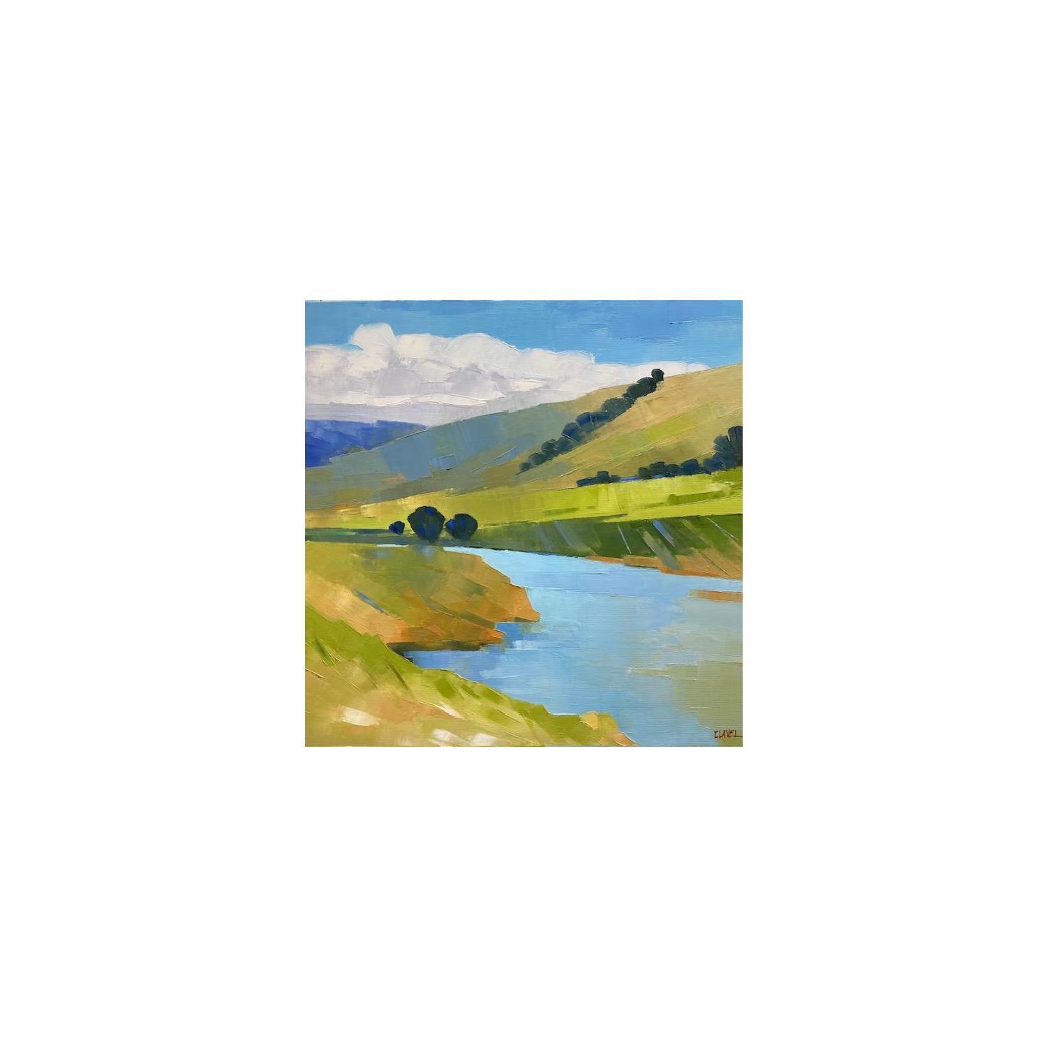 Dieses einzigartige und originale zeitgenössische Kunstwerk "Dans les collines bleues " in dem Stil "Impressionismus" wurde von dem zeitgenössischen Künstler Clavel Pier-Marion kreiert.