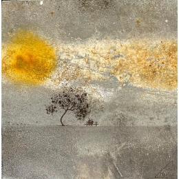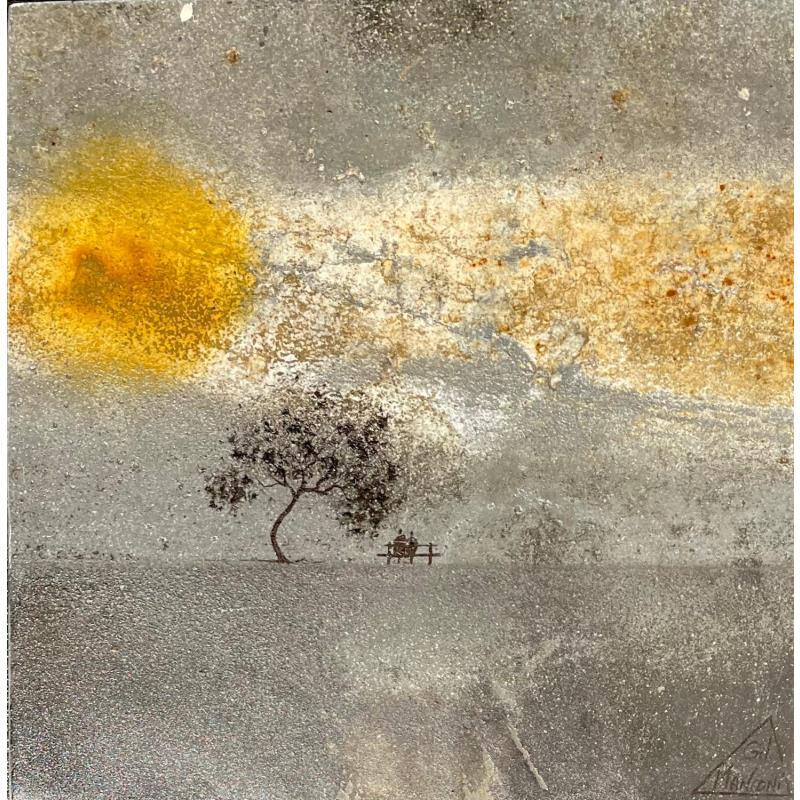Der Künstler verwendete Metall, Upcycling, um dieses Kleine Gemälde zum Thema "Landschaften" anzufertigen.