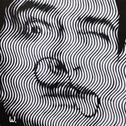 Der Künstler verwendete Acryl, Posca auf Papier, um dieses Kleine Gemälde zum Thema "Pop-Ikonen" anzufertigen.