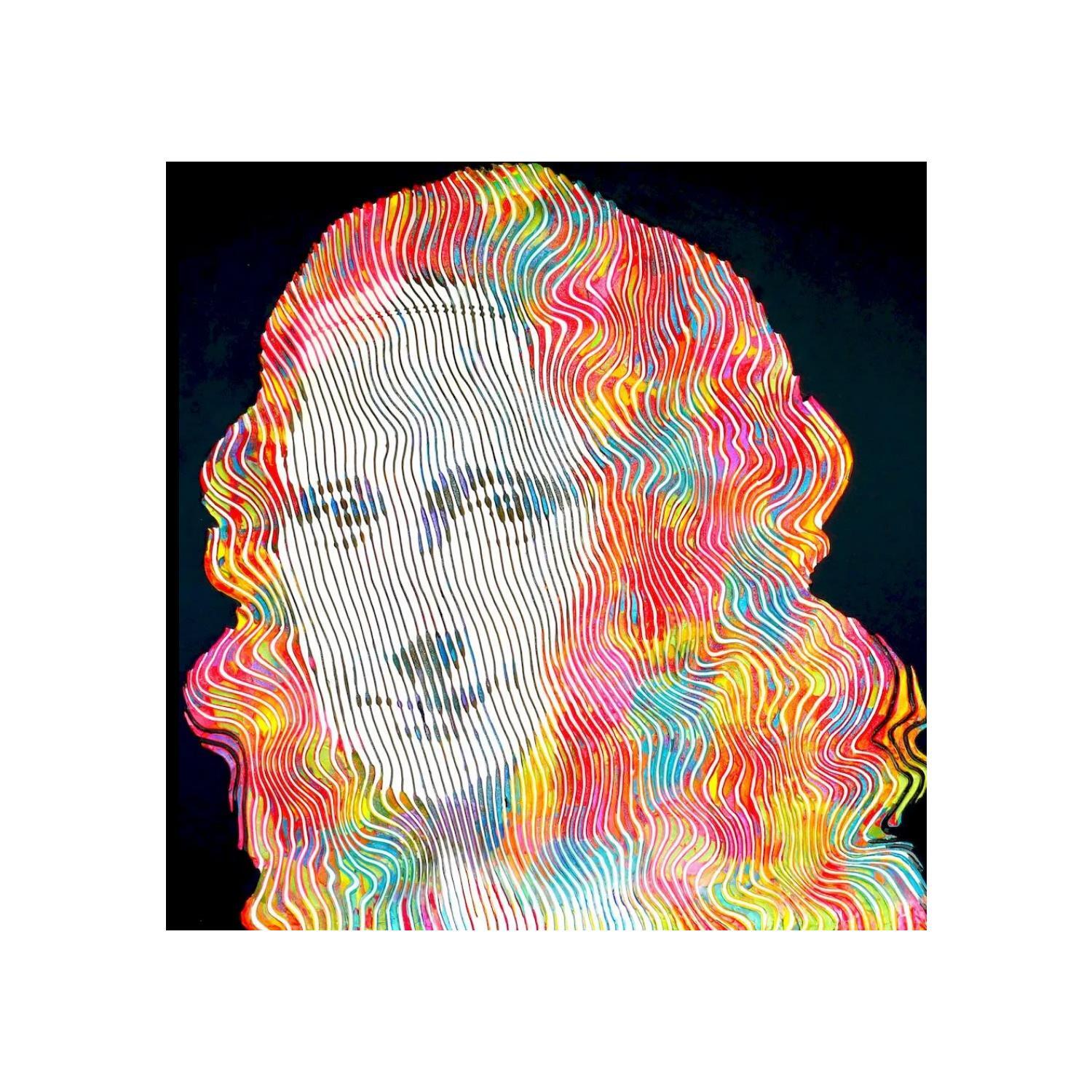 Der Künstler verwendete Öl, Acryl auf Leinwand, um dieses Große Gemälde zum Thema "Pop-Ikonen" anzufertigen.