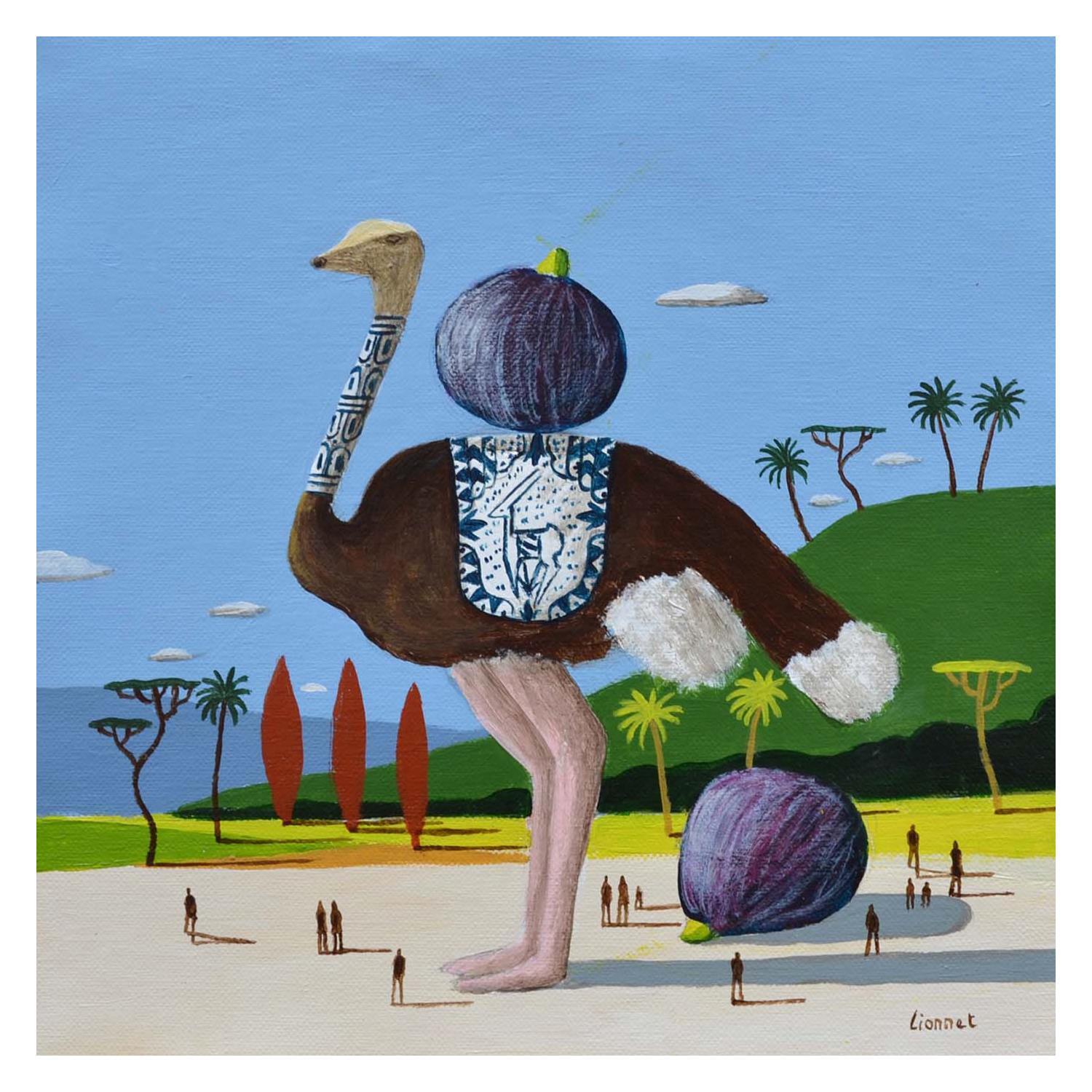 Dieses einzigartige und originale zeitgenössische Kunstwerk "Autruche aux figues" in dem Stil "Surrealismus" wurde von dem zeitgenössischen Künstler Lionnet Pascal kreiert.