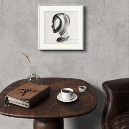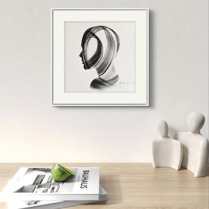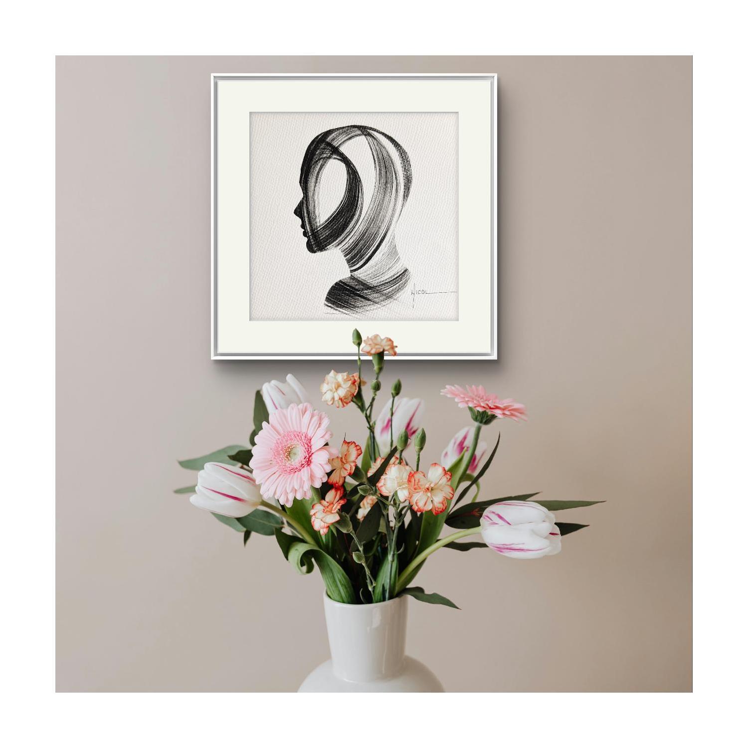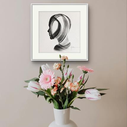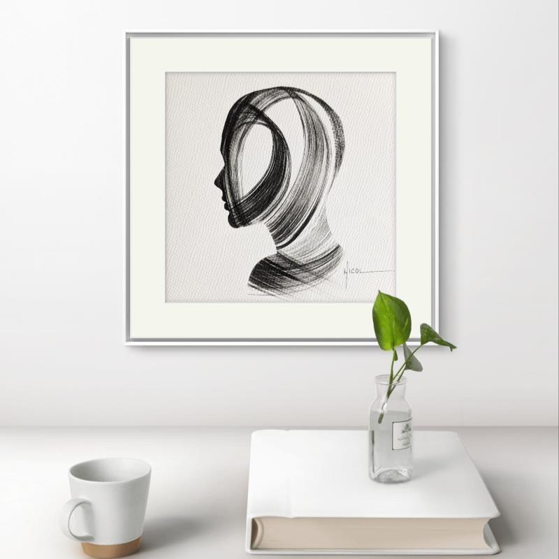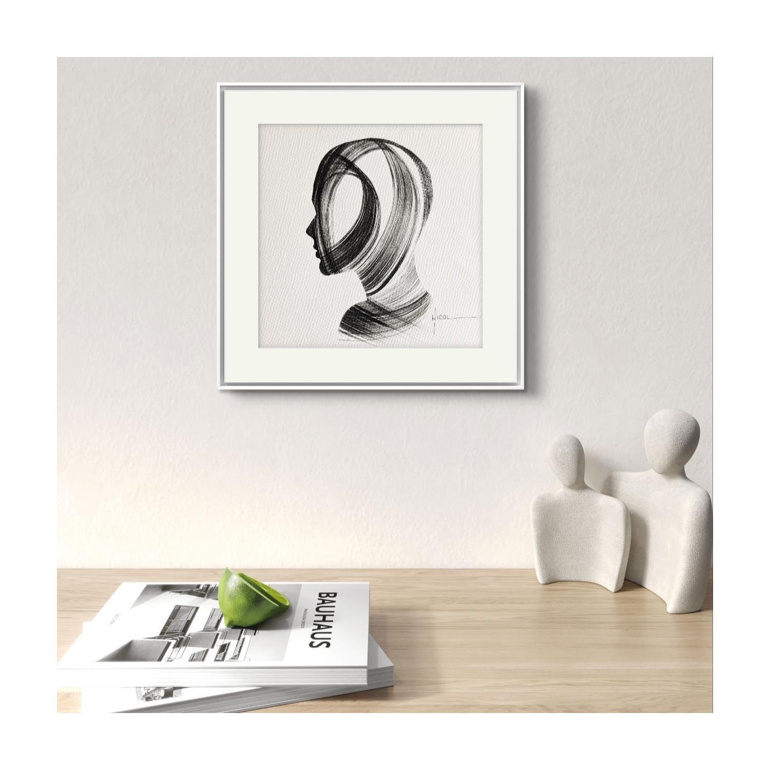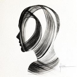 This unique and original contemporary artwork "Time CCCXXI" on the subjects of Minimalist, Black & White, Portrait has been created by the contemporary artist Nicol.