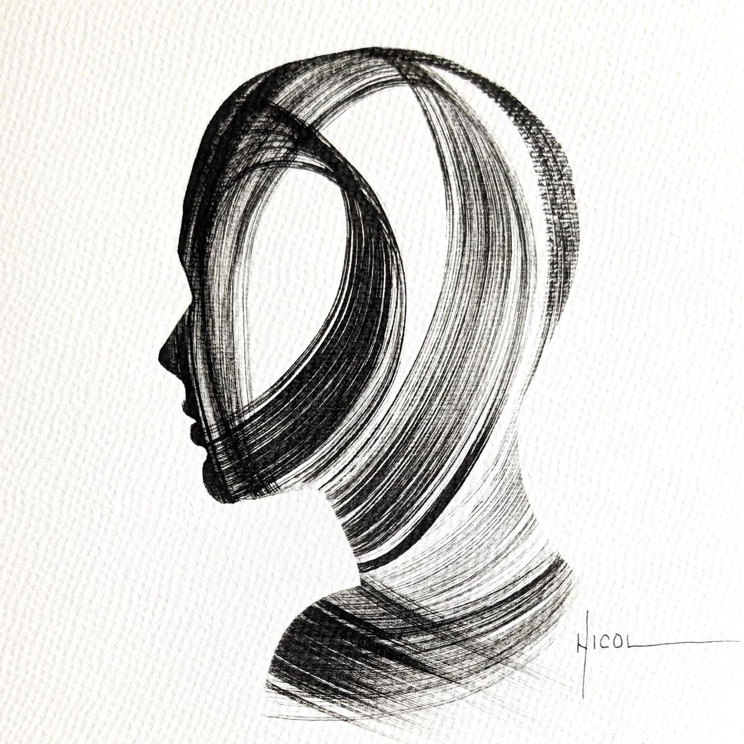 Time CCCXXIPainting Time CCCXXI by Nicol | Painting Figurative Portrait Minimalist Black & White Ink Paper
