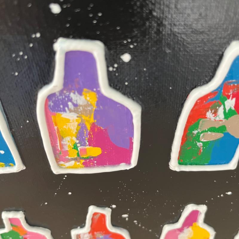 This unique and original contemporary artwork "ABUS DE COULEURS" was created by contemporary artist Mam. The artist used the Acrylic technique to create this small-format Pop art-style painting on canvas.