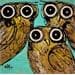 This unique and original contemporary artwork "Trio de chouettes sur fond bleu" on the subject of Animals has been created by the contemporary artist Maury Hervé.
