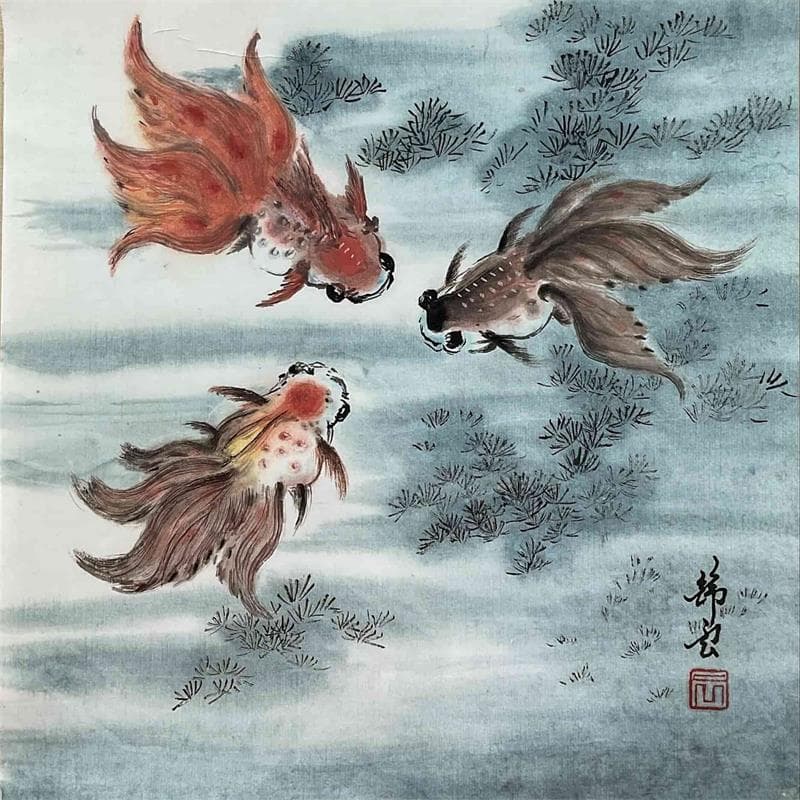This unique and original contemporary artwork "Poissons rouges" on the subject of Animals has been created by the contemporary artist Tayun.