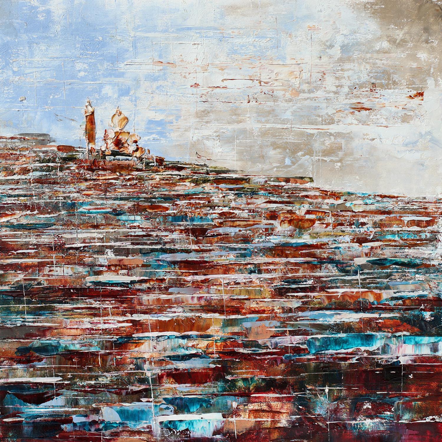 Set up in his workshop in Chambéry in Savoie department, Pierre has worked to produce his works since 2004. The French literature teacher, who has taught in several high schools in the Auvergne-Rhône-Alpes region for many years, chose to improve his knowledge by enrolling in a course dedicated to computer assisted creative techniques. Upon graduating in 2000, Pierre would integrate the IT service of a large company, which would allow him to earn his stripes in this new skill domain. A keen drawer since he was a child, the artist's attention has turned over the years to oil painting. Performing directly on the canvas support without any sketching beforehand, Pierre interprets the world around him from a multitude of colourful touches, composing his pictorial works "principally with volume, accumulations of volumes and nuances of shades that define at the same time perspective, horizon and motifs".