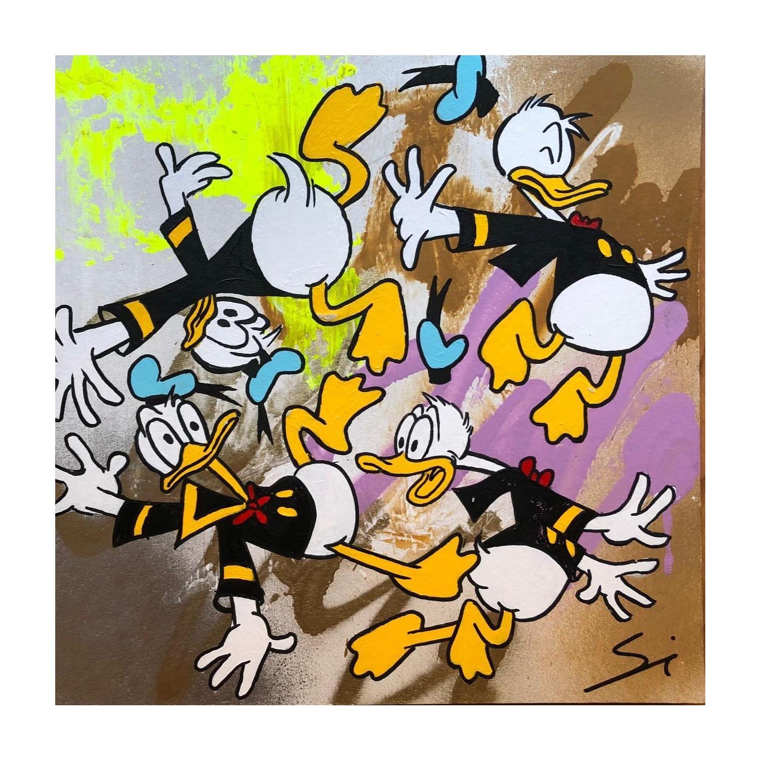 This unique and original contemporary artwork "crazy donald" on the subject of Pop icons has been created by the contemporary artist Mestres Sergi.
