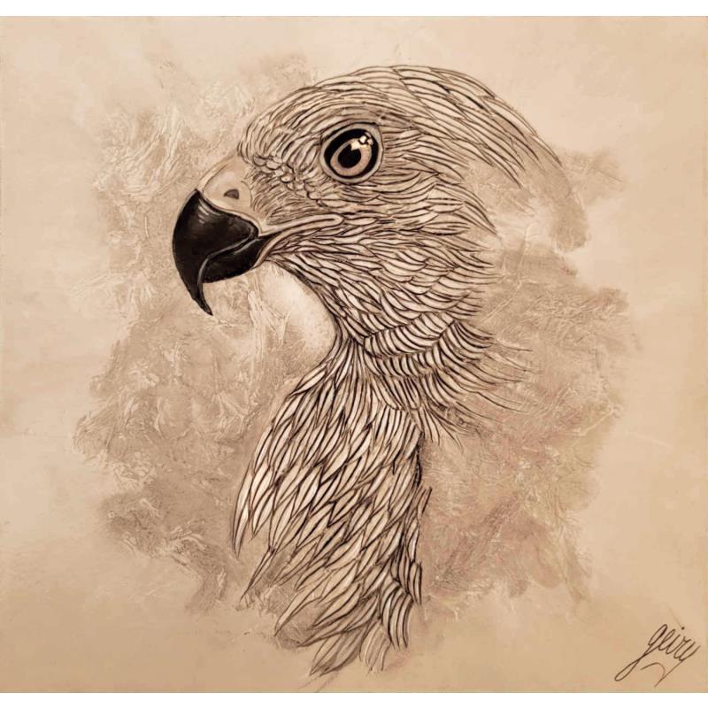 This unique and original contemporary artwork "Faucon gerfaut" has been created by the contemporary artist Geiry.