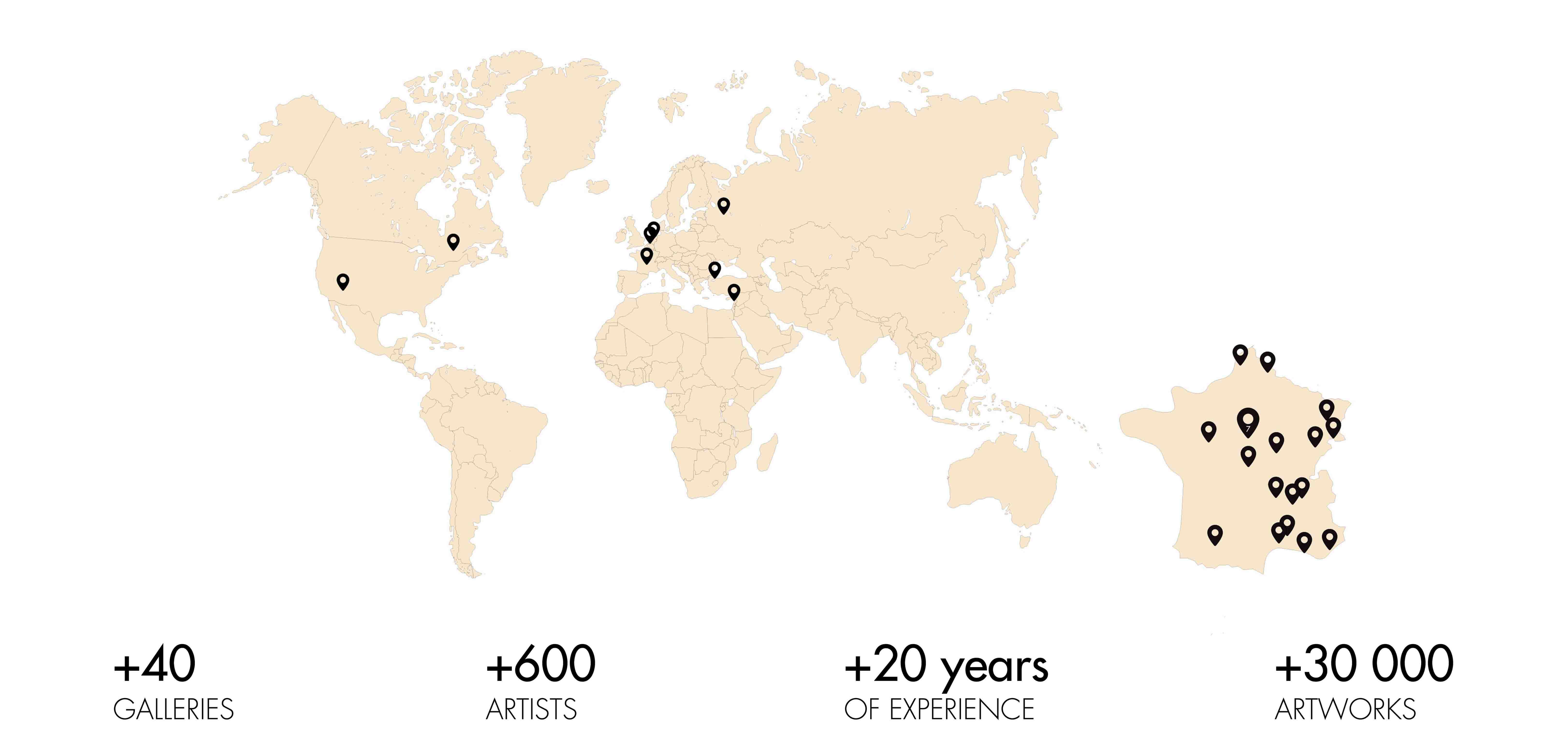 Carré d'artistes exhibits its artists in more than 30 galleries around the world & online with a store dedicated to each artist.
