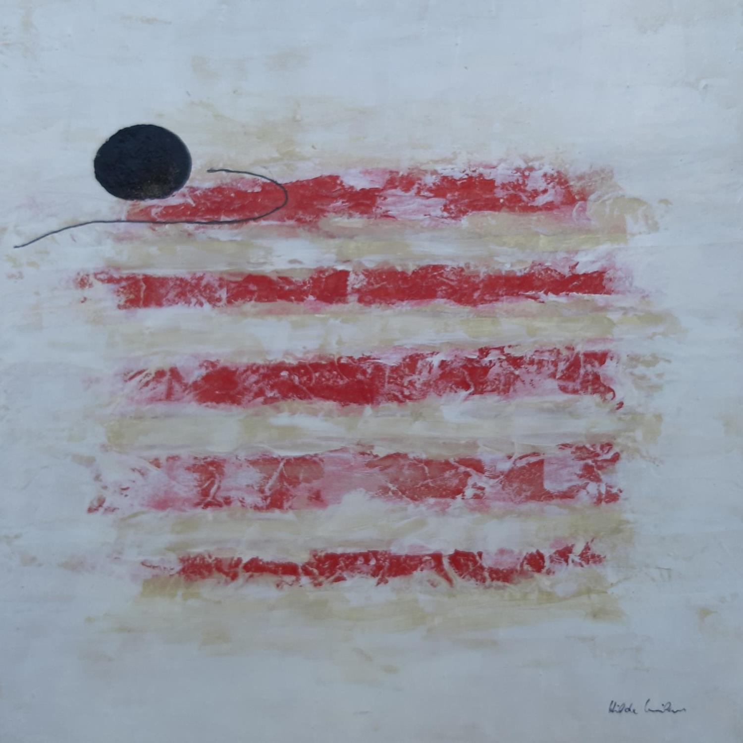 The artist used Acrylic, Gluing media on Cardboard to create this Abstract, Small size painting.