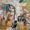The artist used Acrylic, Gluing, Paper, Posca media on Canvas to create this Abstract, Small size painting.