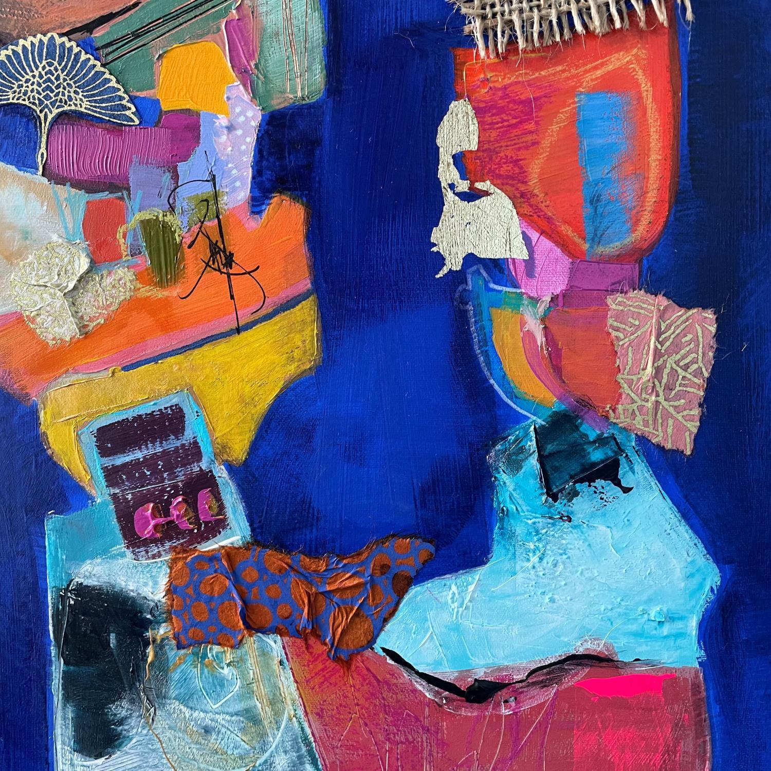 The artist used Gold leaf, Pastel, Acrylic, Gluing media on Canvas to create this Abstract, Large size painting.